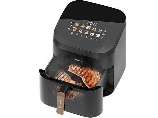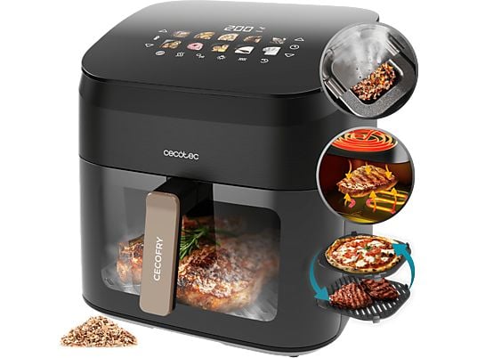 La Cecotec Cecofry&Grill Smokin’ 8500 es mucho más que una freidora de aire; es un centro de cocción 3 en 1 que te permite freír, asar a la parrilla e incluso ahumar en tu propia cocina.